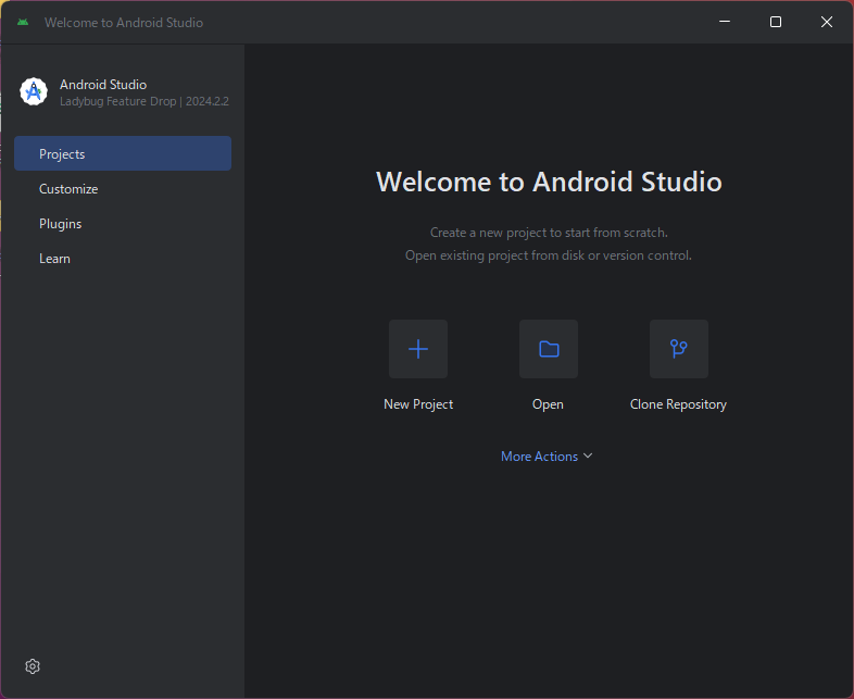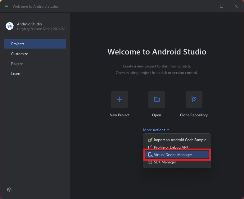 1. ProjectsのMore ActionsからVirtual Device Managerを押下する。
