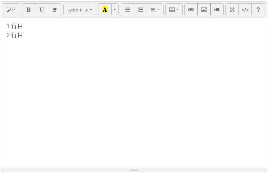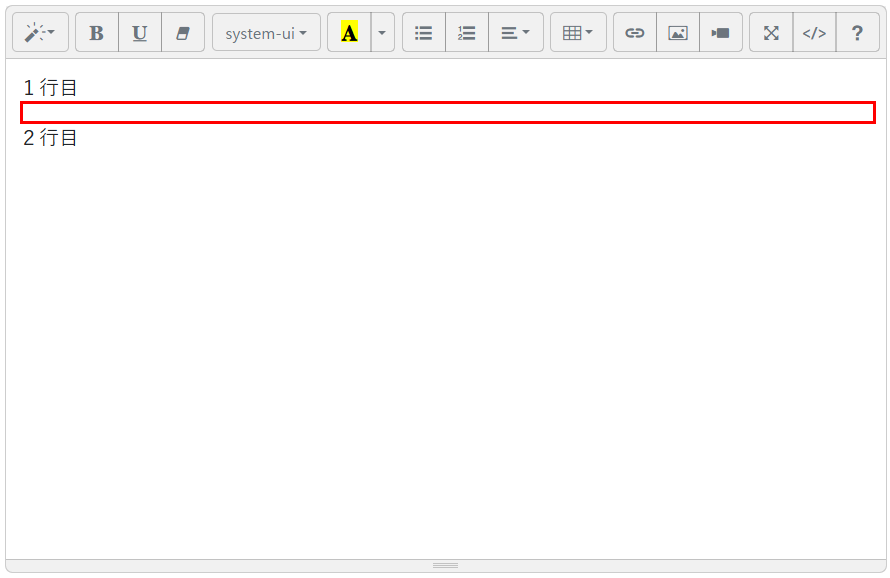 Summernoteは文字を入力するとpタグで囲まれるが、Bootstrapのpタグのスタイルは下マージンが「1rem」で設定されているため、以下の赤枠のように行間に1文字分の高さが確保されてしまう。