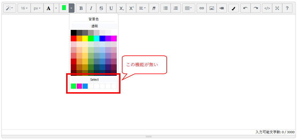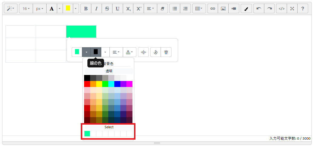 summernote-ext-tableで選択できるカラーパレットには何故かカスタム色の作成機能がコメントアウトされて使えなくなっているので使えるようにする。