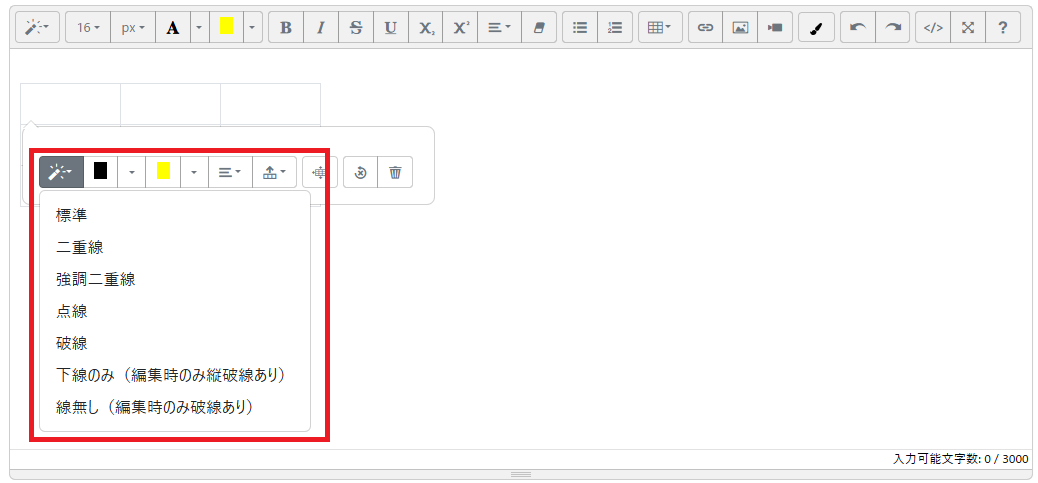 summernote-ext-tableの導入により線の色を変更できるようになったが、線のスタイルを二重線や点線に変更できるような機能は無いので追加してみる。
